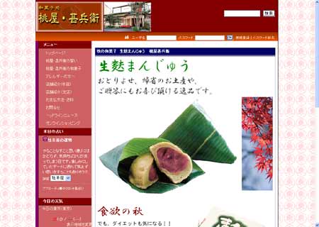 ◆教室のお問い合わせは新春日町の新杵菓子舗へ:097−544−1435◆ 中津市の和菓子店、桃屋・甚兵衛のホームページを紹介します。コンテンツも充実していてトップページには『本日の占い』を設置しているので、ついつい占ってしまいます。オンラインショップの品数も豊富で、特に遠方のファンの方には朗報となることでしょう。