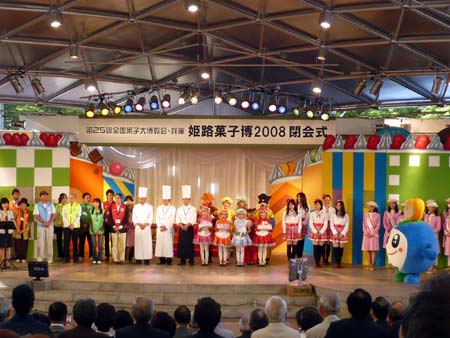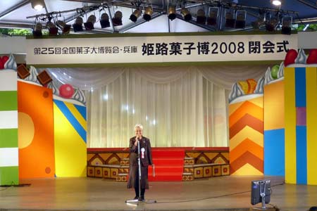 開会式から24日間、連日予想を大きく上回る入場者数で、延べ90万以上の人が会場を訪れた第25回全国菓子大博覧会・兵庫も、11日(日)大盛況のうちに閉会式を迎えることができました。大分からもご来場された方がいらっしゃることと思います。ありがとうございました。華やかな博覧会でしたが、菓子博レディの方が挨拶の際に感極まっているところを見ると、毎日会場でお世話をしてきたスタッフ関係者皆さんの苦労は計り知れないものでしょう。本当にご苦労様でした。お菓子好きな人はまた4年後を楽しみにして下さい。次回開催県は決まり次第お知らせします。