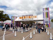 ついに全国菓子大博覧会・兵庫が開幕しました。初日は朝から曇りで、平日ということもあってか、それほどの混雑はなく、どのパビリオンも、そう待ち時間なく入ることが出来ているようでしたが、2日目は晴天の土曜日ということもあり、初日の倍以上の約37,000人が入場したらしく、どこを見ても長蛇の列が出来ていました。世界文化遺産の姫路城見物の人と合わせて、ゴールデンウィーク中の姫路は凄いことになりそうです。