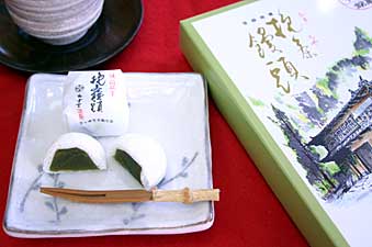 おみやげにふるさとの銘菓、挽茶まんじゅう