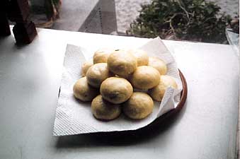 ごくいなかの昔のお母さんの造ったのをまねて、生地に卵を入れたり、北海道小豆を長い時間をかけ、よく炊いて作ったあんこを使っています。タンサンまんじゅうです。